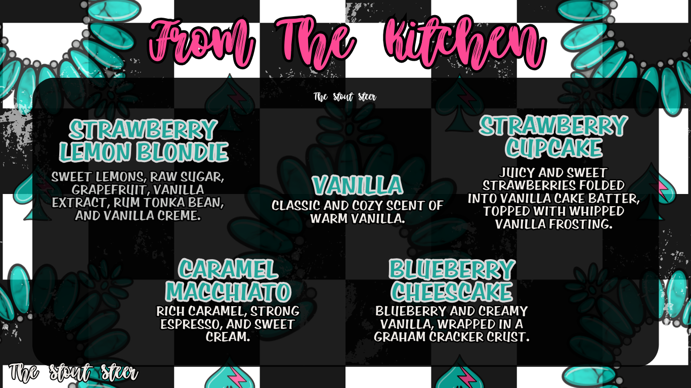 The Stout Steer has many great smelling, long lasting and unique freshies! The description of each scent online makes shopping easier. The owner was super helpful with a custom order and the shipping was fast each time. They also have a boutique with a lot of fun fashionable items- clothing, shoes, jewelry, bags etc. Highly recommend!
