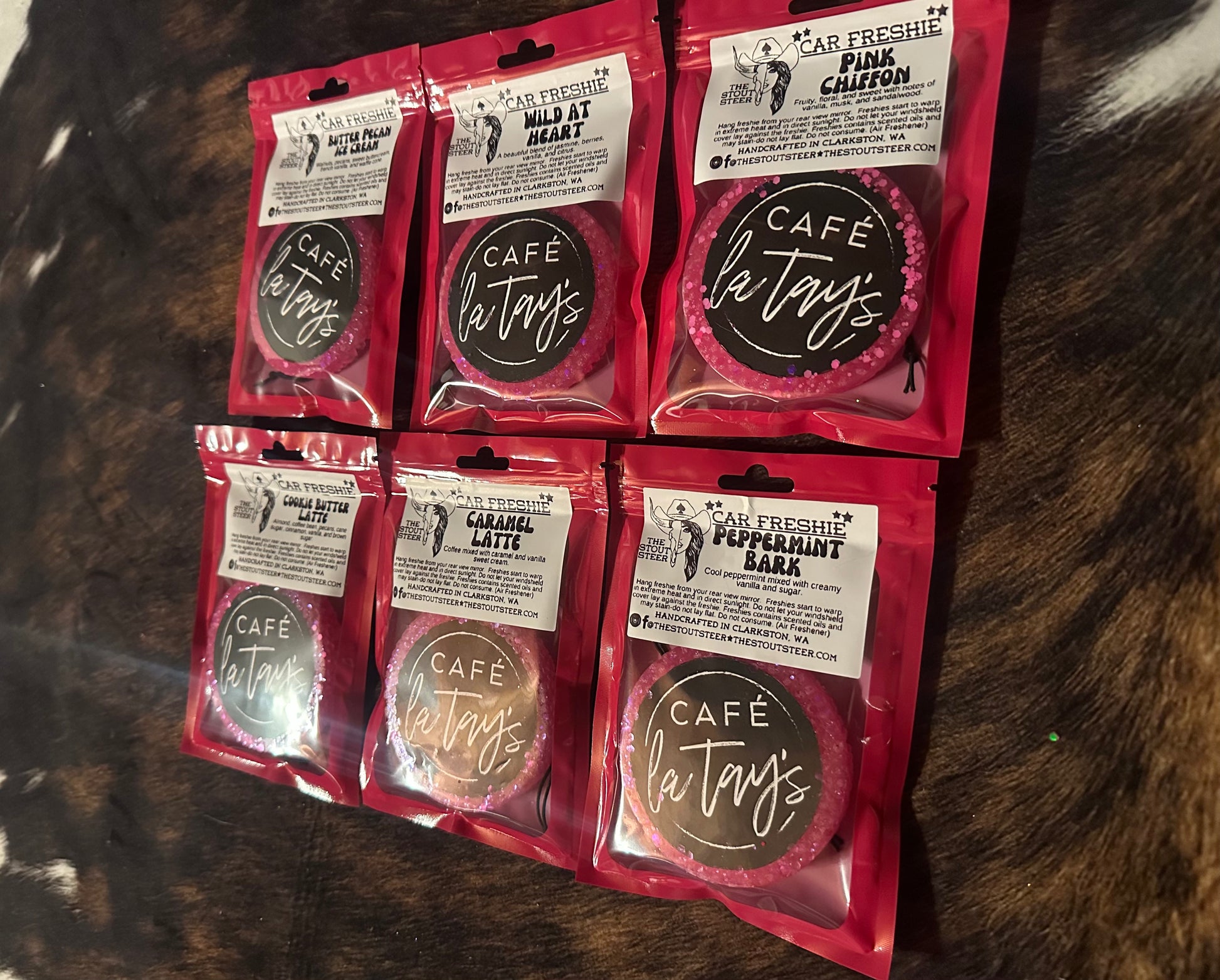 Hang freshie from your rear-view mirror in your car, closet, bathroom, near the garbage, or any small space. Attach vent clip freshies to your car vents. The scent will last approximately 3-5+ weeks, depending on the scent and climate.