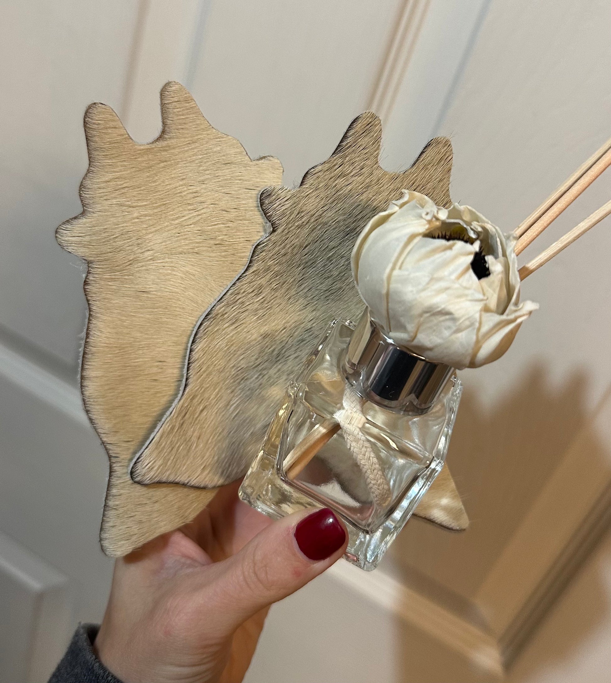 - Room diffuser with flower and straight wood reeds