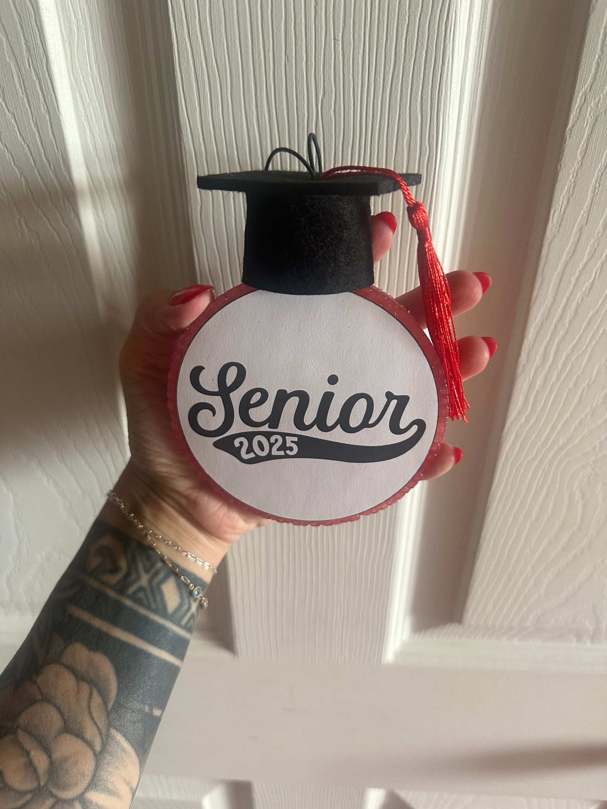 Dimensions: Approximately 4” x 4” with a graduation cap and tassel. No need to select “tassel” under embellishments, unless you want an extra one hanging from the bottom of the freshie. Please enter what you’d like to be printed on the freshie, or “as shown”, or upload a photo of your senior that I can put on the freshie! I have a wide variety of tassel colors, please note what color that you’d like.