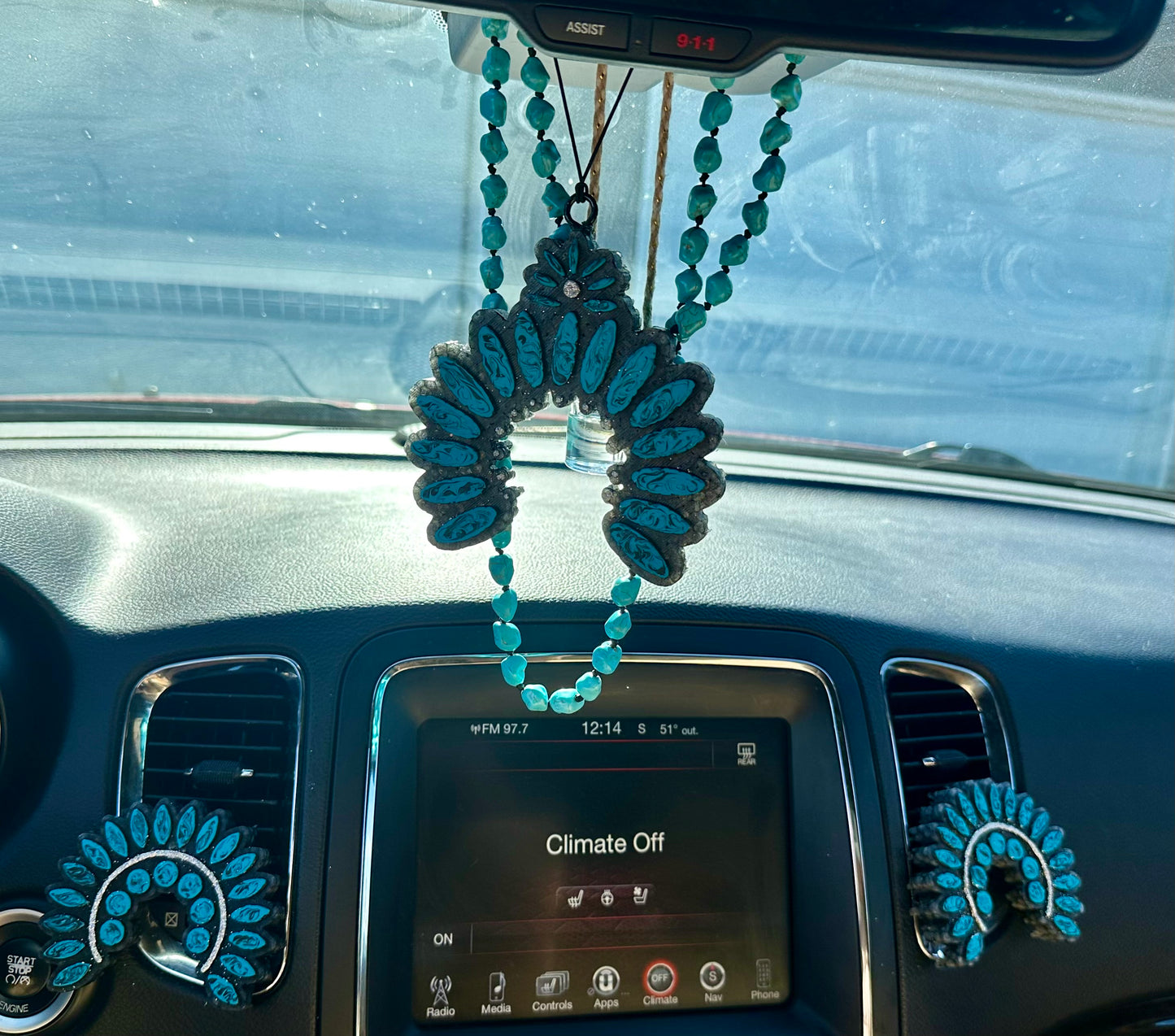 Layer this cute car accessory around your rearview mirror to add some western flair to your daily drive! Pairs well with our car freshies, car diffusers, and car charms.